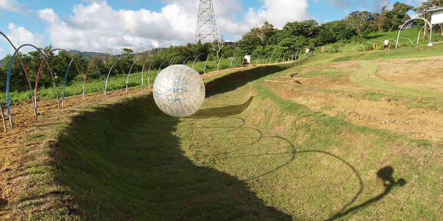 哈利波特草地飛球場位於南灣北區,是全台灣第一座有固定場地的草地飛球場,將具有娛樂效果的草地飛球引進台灣,將場地的草皮設計與球道的計算規劃完善,出發點就是在山坡上,正對龍鑾潭,視野景觀極佳,乘坐人員固定在球體內部,一次可乘坐兩人,順著坡道翻滾而下,三百六十度的天旋地轉,不用在遊樂場裡面就可以體驗!宛如魔法師一般,從山坡上快速滾下來時,身體有俯衝、旋轉的快感,但球體呈現如橡皮一般的有彈性,會感受到彈跳的趣味,可要抓准時間前往大玩特玩一番!